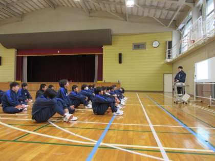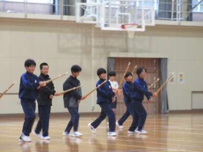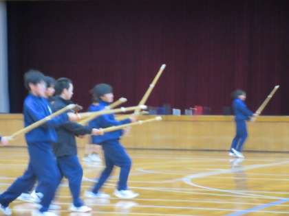 剣道の学習です。4種類の足さばきについて動画を見、気を付けることについての説明を聞き、練習していました。