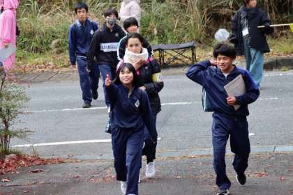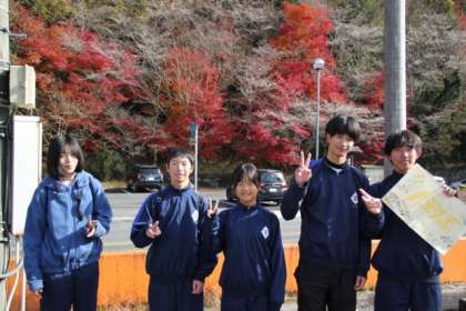 美しい四季桜と紅葉の中を、班でクイズや課題に取り組みながら、学区内15kmを歩きました。地域のみなさま、ご家族のみなさま、ご支援ありがとうございました。