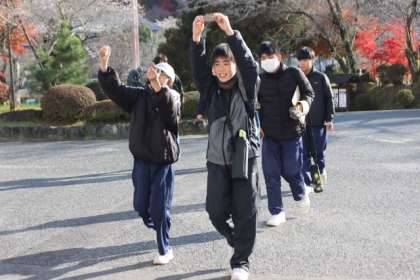美しい四季桜と紅葉の中を、班でクイズや課題に取り組みながら、学区内15kmを歩きました。地域のみなさま、ご家族のみなさま、ご支援ありがとうございました。