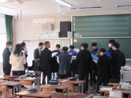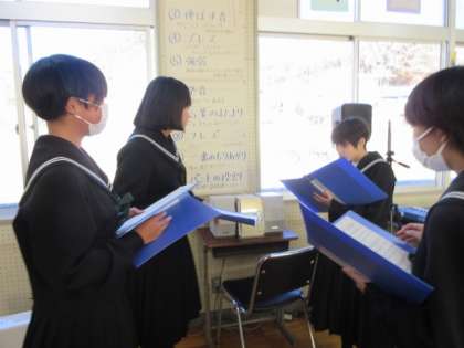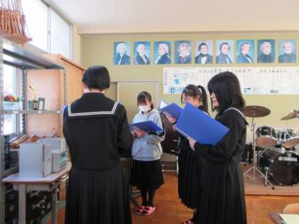 毎年1年生がチャレンジする伝統(?)の三部合唱「あなたへ〜旅立ちに寄せるメッセージ〜」を練習しています。今日は1番の音取をがんばっていました。