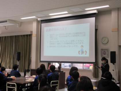 今週の帰りの会に各教室で図書委員がビブリオスピーチをする、という図書委員会の活動を給食の時に紹介していました。どんな本が紹介されるのか、楽しみですね。