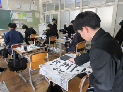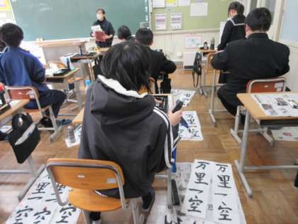 書道の先生から、1年生の作品のよいところ、がんばっているところについてお話がありました。書き初め大会に向けて応援してくださいました。