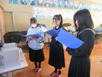 「あなたへ〜旅立ちに寄せるメッセージ〜」のパート練習です。難しいリズムや音程の変化がある部分を、何度も聴いたり、口ずさんだりしていました。
