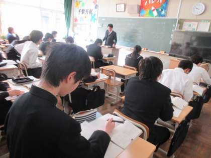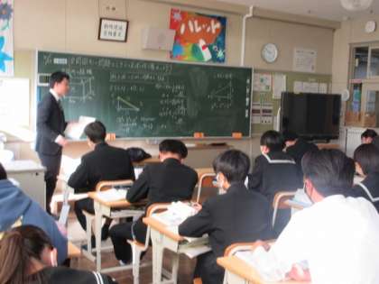 三平方の定理を使って、空間図形の辺の長さを求めています。どういうふうに立体を切り取るとよいのか、ヒントを聞きながら考えていました。
