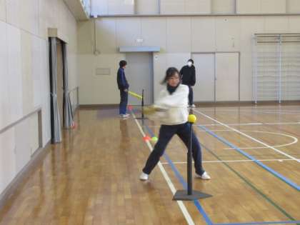 グループに分かれて、キャッチボールとバッティングの練習をしています。正面でボールをとらえることや、どこに打ちたいかねらいを定めることに気を付けていました。