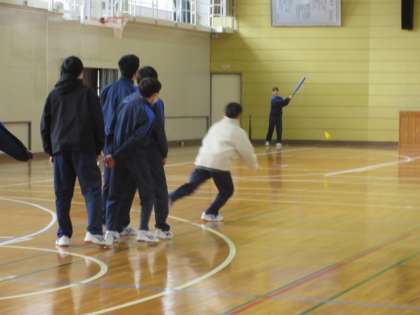 ティーボールのバッティングと守備の練習をしています。守備チームは互いの動きをカバーして動く練習をしていました。