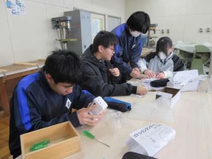 ラジオライトを完成させました。ラジオで情報収集したり、ライト部分に水のペットボトルを置いてランタンのように使ったりできるとのこと。ハンドルを回して電源としても使える防災グッズができました。