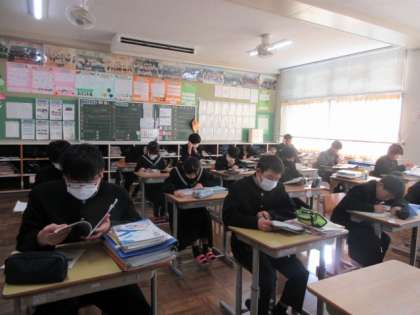 今年度最後の定期テストが始まりました。どの子もテスト前のまとめに集中していました。