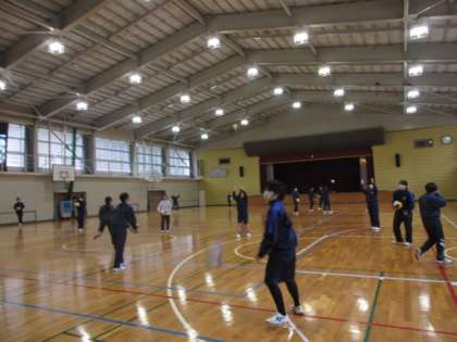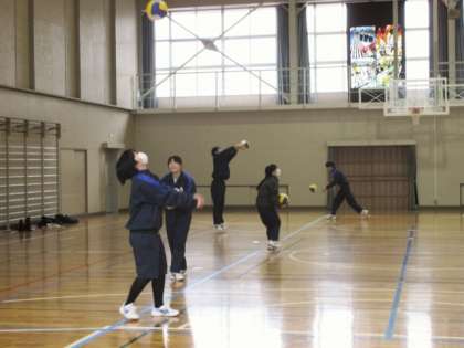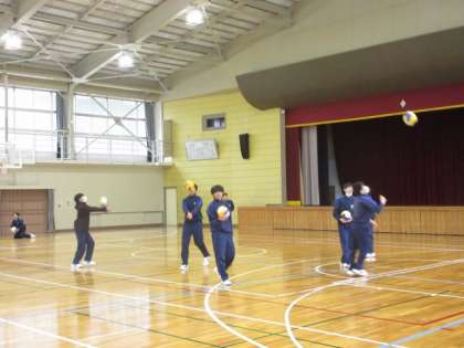 バレーボールの学習です。オーバーハンドパスとアンダーハンドパスが続けてできるよう練習していました。