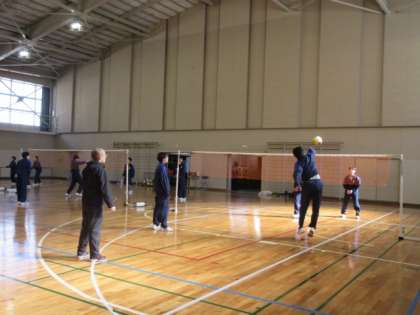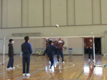 バレーボールを試合形式で練習しています。ボールがつながるようになってきました。