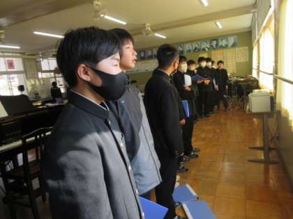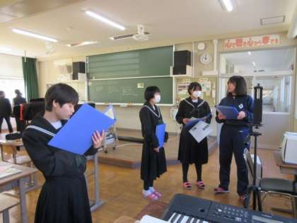 来週の卒業式に向けての練習です。パートの旋律をしっかりと自信をもって歌えるか、確認していました。