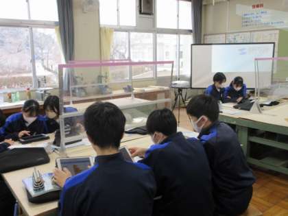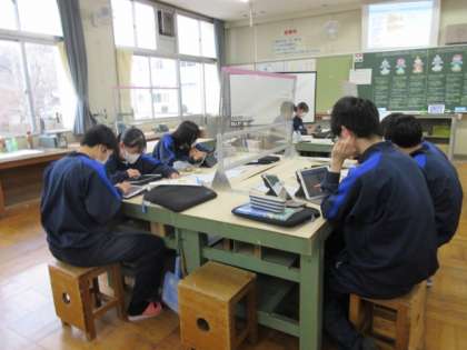プログラミングしたキャラクターの動きをグループのメンバーに送って、それぞれの作品を確認していました。