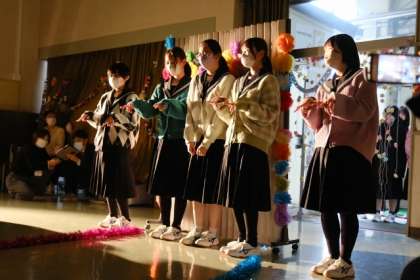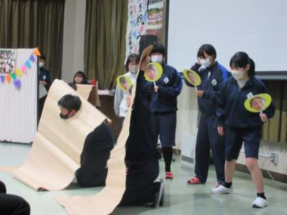 お世話になった3年生のために、1、2年生が力を合わせて、劇、音楽、ステンドグラス披露、思い出スライド、感謝の手紙贈呈などを行いました。3年生からはダンスのお返しがあり、とても温かく充実した会になりました。
