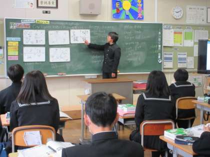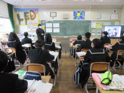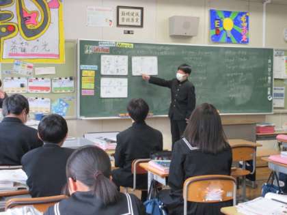 テキストを読んで、内容を予測し、班ごとでイラストを使って発表しています。