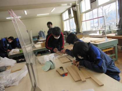 いよいよ本立ての完成です。部品を微調整して組み立てていました。