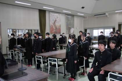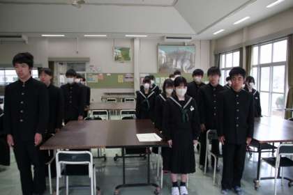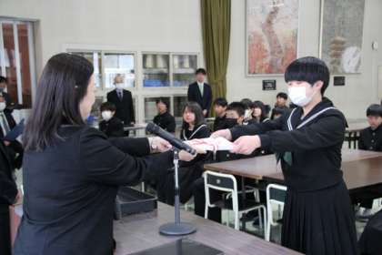 表彰伝達、令和7年度前期生徒会役員任命、生徒会引継ぎ式等に続いて、修了式を行いました。修了証授与に続いて各学年代表のスピーチがあり、今年度の振り返りと来年度への抱負について語りました。令和7年度も充実した1年になることを願い、今年度の学校生活を締めくくります。