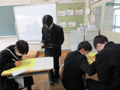 1年間の予定掲示を作っています。3月担当の生徒は、「この日が来るのがこわい」と合格発表の日を書き込んでいました。