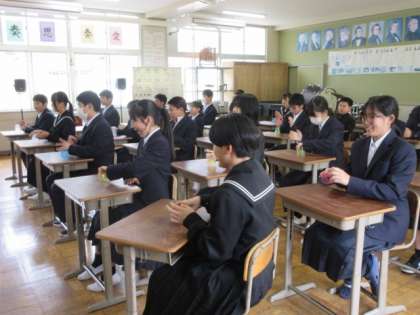 授業オリエンテーションに続き、カップミュージックに挑戦。だんだん手が素早く動くようになっていました。