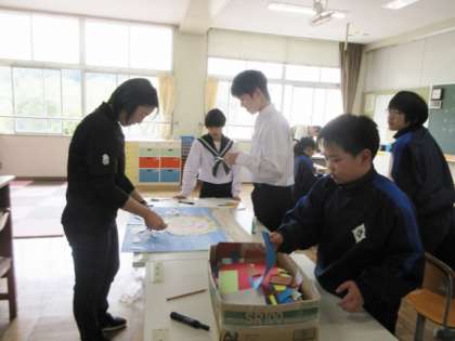 一人一人のイラストや文字を組み合わせて、級訓パネルを作っています。仕上がりが楽しみです。