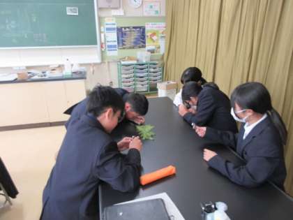 シダ植物がどのように仲間を増やしているか、葉の観察や動画鑑賞を通して考えていました。