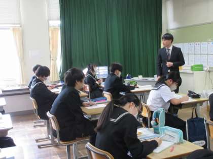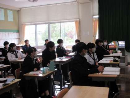 展開の復習をしながら、和と差の積の因数分解ができるよう考えています。隣の人と答えを確認しながら進めていました。