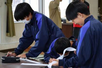 はちまきに互いの体育祭への思いを書き合っています。