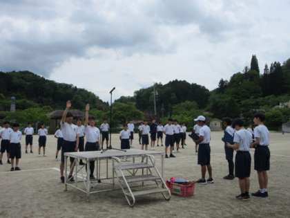 体育祭に向けて、各係の動きや選手の入退場などを全校で練習しました。