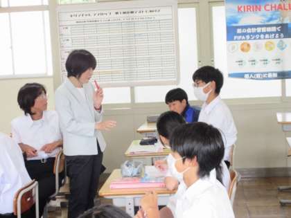 接続詞を使って英文を作っています。文を作るために必要な単語を質問しながら取り組んでいました。