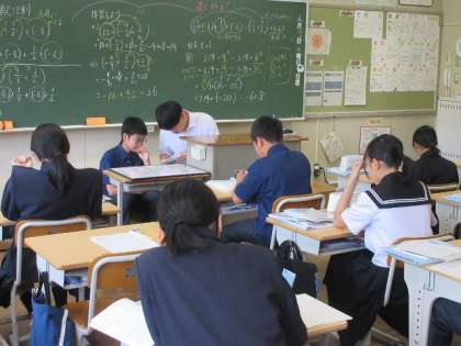 初めての定期テストに向けて、問題を解いたり、不正解だった問題を解き直したりしています。一人一人、先生のアドバイスを受けていました。