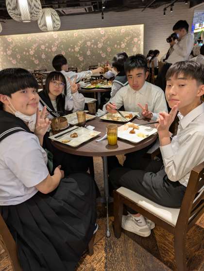 夕食はブュッフェスタイルの中華。小籠包や油淋鶏など思い思いの料理を選んでいました。