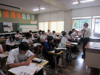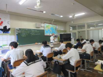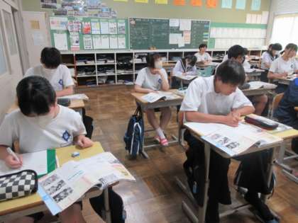 第二次世界大戦後の日本の状況について学習しています。先生が尋ねると、知っていることを声に出していました。