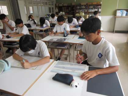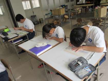 これから訪れる豊田市美術館・豊田市博物館についての話を聞いた後、切り絵の制作に進んでいました。