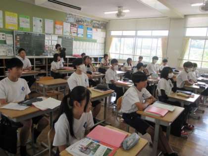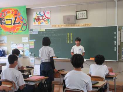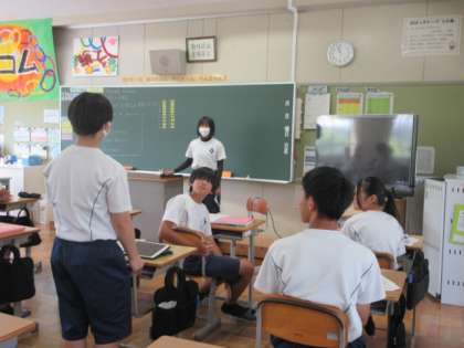 小原中学校の先輩をお招きして、英語でクイズに答えたり、スピーチを聞いていただいたりしました。職場体験での学びや将来の夢について一人一人発表しました。