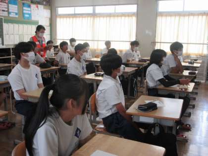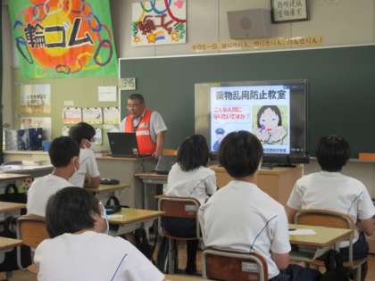 豊田警察署の方を講師に「薬物乱用防止教室」を行いました。ドラマ仕立ての映像を見たり、実際に警察署の方が出会った例のお話を聞いたりしました。