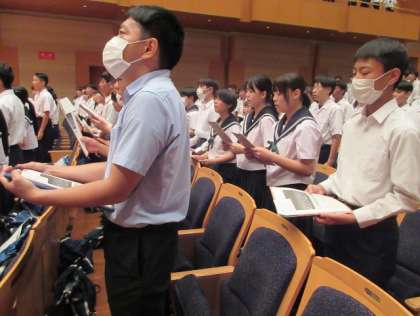 心に残る記念事業として豊田市が開催している名フィルによるコンサートを聴くために、3年生がコンサートホールへ出かけました。オーケストラやパイプオルガンの響きを堪能したり、指揮者やバス歌手の方とともに「翼をください」を全員で歌ったりしました。