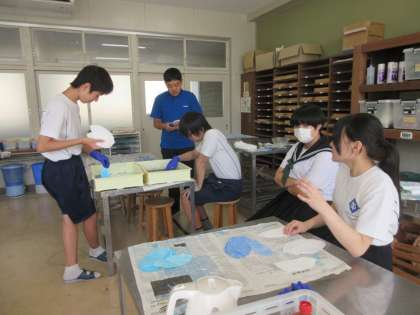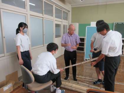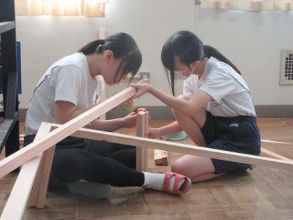 軽トラあんどんパレードに向けて、いよいよ制作に入りました。土台を作ったり、鳥の羽根部分を和紙で作ったりしていました。