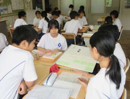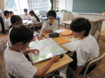 「星の花が降るころに」という教材について、何をどのような順で学習するか、グループ活動を通して考え、計画を立てていました。