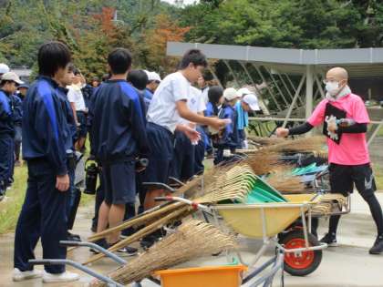 PTA主催の学校美化・リサイクル活動が行われました。学校の様々な場所の草刈り、草取りとリサイクル活動を、保護者や地域の方と一緒に生徒も行いました。かっこよく動く大人たちと一緒に生徒たちも一生懸命活動しました。
