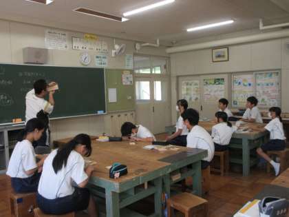 木材を組み立てるため、釘を打つ場所を考えています。どうしてその位置なのかを理解した後、釘を打つ位置に印をつけていました。