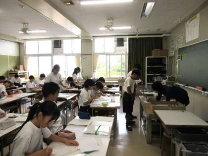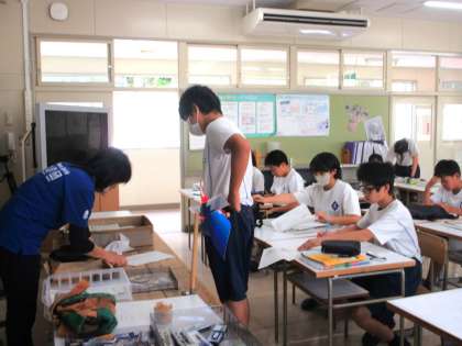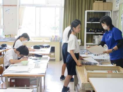 風車の絵柄を考えています。表裏それぞれ違うイメージでデザインしているようでした。