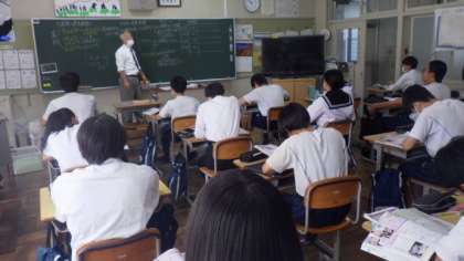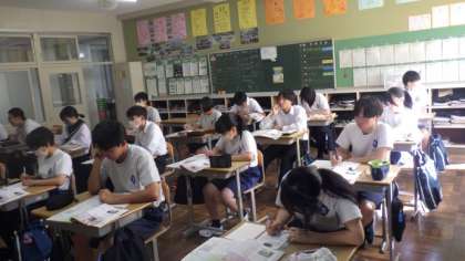 選挙についての学習です。小選挙区と大選挙区の違いやそれぞれの利点について意見を出し合っていました。