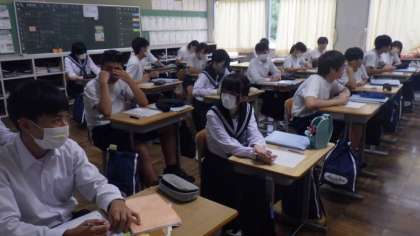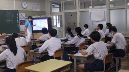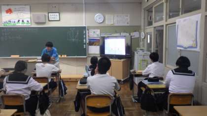 2次式から反比例のグラフをかいています。式に数を代入して表を作り、そこから座標に点を取ってグラフをかいていました。