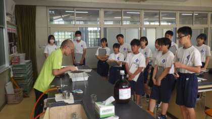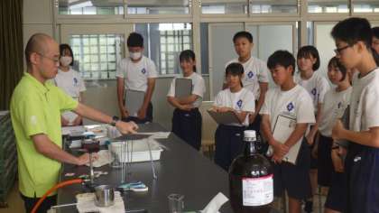 アルコールが固形、液体、気体と変化するとき、質量や体積、密度はどうなるのか、予想して、実験で確かめています。