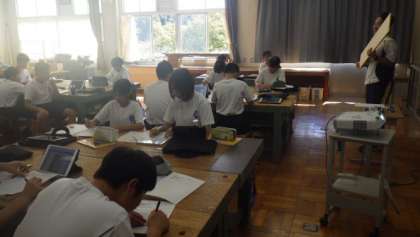 1枚の木の板からラックを作るために、図をかく学習をしています。完成をイメージして楽しそうに取り組んでいました。
