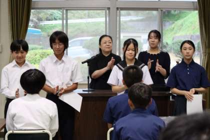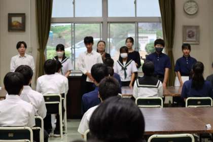 後期の生徒会役員、委員長、室長を任命しました。どの生徒も明るい声で返事をし、任命状をていねいに受け取りました。活躍を期待しています。