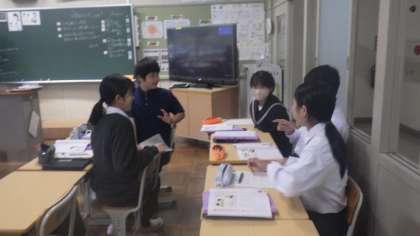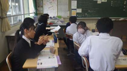 「自分らしさ」をテーマに、教材文を使って話し合っています。主人公の行動や気持ちについて話し合うことで、自分らしさを大切にするとはどんなことか考えていました。