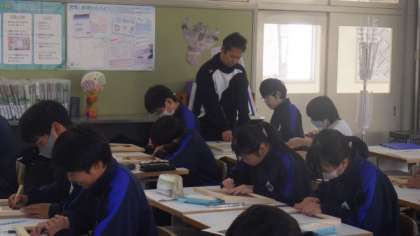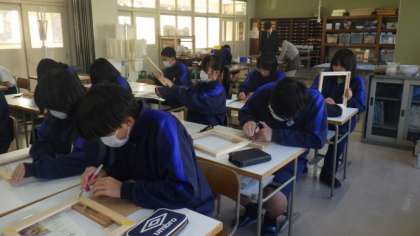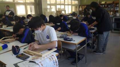 和紙作品を入れる額縁を作っています。彫刻刀を使うのが久しぶりのせいか、慎重に彫り進めていました。