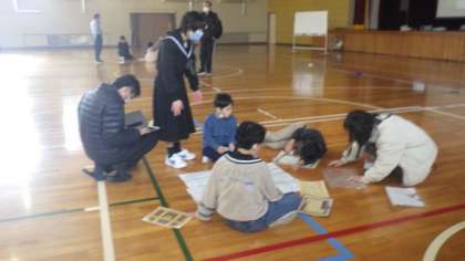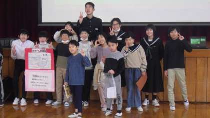 小原の小中学校で集まって、スマイル交流会を行いました。自己紹介、フルーツバスケット、学校探検など、みんなで楽しい時間を過ごしました。