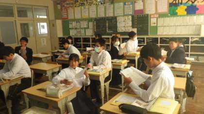 新しく学習した単語を発音して、相手に意味を答えてもらうという活動をペアで行っています。だんだん短い時間でできるようになっていました。