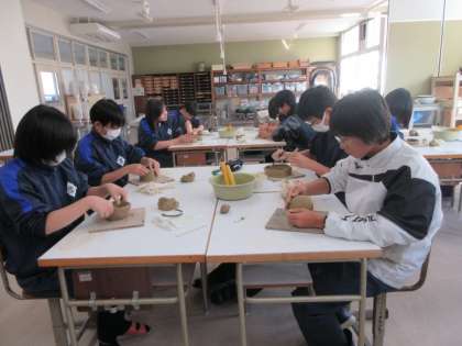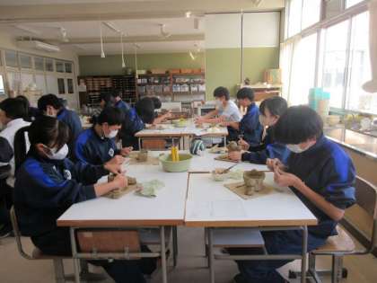「机の上の癒し」のテーマのもと、陶芸に取り組んでいます。小原の陶芸家の先生から教えていただきながら形を作っていました。